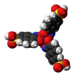 | Keywords: Naphthol Green Y 3D spacefill.png Space-filling model of the Naphthol Green Y molecule a green dye Color code 505050 Carbon C black<br> F0F0F0 Hydrogen H white<br> F51E1E Oxygen O red<br> 3C50FA Nitrogen N blue<br> FAEB00 Sulfur S yellow<br> 8078C0 Iron Fe grey-purple<br> 2011-07-18 own DS Visualizer Jynto talk Neutral form ball-and-stick version Sodium salt ball-and-stick version Sodium salt space-filling version cc-zero Images by Jynto Dyes Iron complexes O-donor complexes Nitroso compounds Naphthalene sulfonic acids Space-filling models |