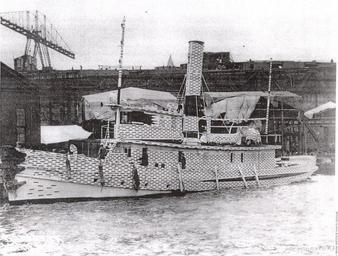 | Keywords: Narkeeta (Harbor Tug No.3).jpg en Narkeeta Harbor Tug No 3 with an experimental brickwork camouflage scheme in 1892 Black stripes on the white background produced a soft gray effect at moderate distances Larger black patches were applied to those areas which usually reflected light Visibility of the ship was reduced when the light was behind the observer http //www navsource org/archives/14/08003 htm US Naval Institute photo 1892 Tugboats of the United States Navy PD-USGov-Military-Navy |