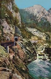 | Keywords: Narrow-Gauge-Railway Ostbahn Tunnels-No-47-46 West-of-Mesici.jpg en The eastern portals of the tunnels No 47 and 46 located in the gorge of the Prača River as seen in this upstream view towards Sudići Old postcard Ansichtskarten-Spezialhaus C Cappon Sarajevo Franz Josefstr No 4 1909 43 45 01 7 N 18 58 51 3 E heading W Bosnian Eastern railway Postcards of Bosnia and Herzegovina Rail tunnels in Bosnia and Herzegovina Rail transport in Bosnia and Herzegovina in the 1900s PD-old-70-1923 | ||||