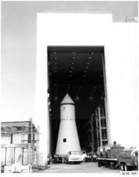 | Keywords: blackandwhite monochrome black and white Caption: NASA/APOLLO W/O 10547 APOLLO STACK ROAD TEST, MSOB, KSC-M1. TO SATURN LAUNCH COMPLEX 34, CAPE KENNEDY. TOP TO BOTTOM: COMMAND MODULE, SERVICE MODULE, AND SPACECRAFT LUNAR EXCURSION MODULE (LEM) ADAPTER (SLA) ON TRUCK TRANSPORT. APOLLO STACK AT MSO EAST DOORWAY ON TRUCK TRANSPORT. MSOB (004-1) (sb) Photo dated 8-16-65 Photo labelled "SITE 548" Caption: NASA/APOLLO W/O 10547 APOLLO STACK ROAD TEST, MSOB, KSC-M1. TO SATURN LAUNCH COMPLEX 34, CAPE KENNEDY. TOP TO BOTTOM: COMMAND MODULE, SERVICE MODULE, AND SPACECRAFT LUNAR EXCURSION MODULE (LEM) ADAPTER (SLA) ON TRUCK TRANSPORT. APOLLO STACK AT MSO EAST DOORWAY ON TRUCK TRANSPORT. MSOB (004-1) (sb) Photo dated 8-16-65 Photo labelled "SITE 548" |