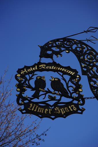 Keywords: nasal shield guest house shield art forging work advertising advertising sign inn shield sparrows ulm sparrows ulm spatz gilded black ornaments curlicue