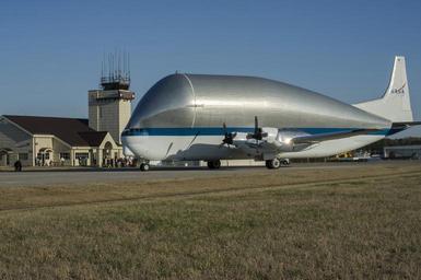Keywords: NASA Super Guppy wide-bodied cargo aircraft landed Redstone Army Airfield Huntsville
