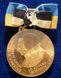 | Keywords: Nassau Medal 100th 2nd Regiment Anniversary 1808 - 1908. Obverse.jpg en Gilt Silver d 39 mm Friedrich August Duke of Nassau 1803 - 1816 and Wilhelm II German Emperor 1888 - 1918 2 busts l around in 1 to 2 lines FRIEDRICH AUGUST HERZOG ZU NASSAU KAISER WILHELM II 13 AUGUST 1808-1908 / 7 lines of battle names fought by the regiment MESA DE JBOR MEDELLIN LA BELLE ALLIANCE - WEISSENBURG WÖRTH SEDAN PARIS MONT VALERIEN Surrounding ZUR HUNDERTJAHRFEIER DES II NASSAUISCHEN JNF RGTS NO 88 Condition EXTREMELY FINE 2015-04-11 16 50 09 own Berlin-George other versions cc-by-sa-4 0 Uploaded with UploadWizard This photo PD-1923 PD-EU-no author disclosure Wilhelm II of Germany on medals Profile medals of twee people facing left Numismatics 1908 medals Medals of Germany Militaria Commemorative medals |