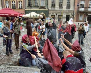Keywords: Naszość.jpg en Polish political group Naszość during their performance pl Naszość oddająca pokłon T W Bolek w trakcie akcji Spalić Pawła Zyzaka own Mohylek 2009-06-24 Naszość