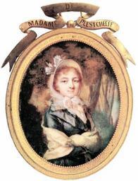 | Keywords: Natalie Pleshcheeva by Ritt.jpg ru аталия Фёдотовна Плещеева 1768 1855 дочь гене ал-майо а Федота ихайловича Ве игина суп уга действительного тайного советника Се гея Ивановича Плещеева 1752 -1802 выпускница Смольного института любимая ф ейлина импе ат ицы а ии Фёдо овны Их сын ихаил 13 11 1799-14 09 1805 unknown Creator Augustin Christian Ritt 1790-е <gallery>File Natalie Fedotowna Plechtcheeff jpg</gallery> PD-old-100 House of Pleshcheev Augustin Christian Ritt Pleshcheeva Originals of images from Russian portraits by Nicholas Mikhailovich Romanov House of Verigin |
