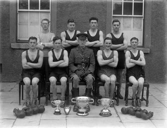 | Keywords: public domain blackandwhite monochrome team sport sport indoor boxing team boxingteam boxers army trainer officer trophies plaque cups boxing gloves boxinggloves shorts singlets barracks ireland munster friday 10th march 1944 1940s forties a.h. poole ahpoole arthur henri poole arthurhenripoole glass negative glassnegative infantry barracks infantrybarracks waterford national library of ireland nationallibraryofireland poole photographic collection poolephotographiccollection blackandwhite groupshot people monochrome team sport sport black and white Public Domain: National Library of Ireland on The Commons Public Domain: National Library of Ireland on The Commons Award winning army boxing team at the Barracks in Waterford, complete with their silverware. Would assume that the chap at the back in the polo neck was their trainer. Date: Friday, 10 March 1944 NLI Ref.: P_WP_4442 Award winning army boxing team at the Barracks in Waterford, complete with their silverware. Would assume that the chap at the back in the polo neck was their trainer. Date: Friday, 10 March 1944 NLI Ref.: P_WP_4442 |