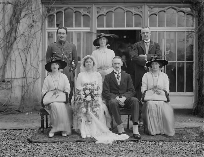 Keywords: public domain blackandwhite monochrome people miss mccreevy missmccreevy newpark house newparkhouse kilkenny ireland wedding people spats formal glass doors glassdoors moustache military uniform limerickbybeachcomber miss mccreery missmccreery mona j. n. mccreery monajnmccreery a.h. poole ahpoole arthur henri poole arthurhenripoole glass negative glassnegative national library of ireland nationallibraryofireland sudden death klaxon suddendeathklaxon royal dublin fusileers royaldublinfusileers r.a.m.c. ramc military hospital grimsby militaryhospitalgrimsby pneumonia alice mccreery alicemccreery john scott dove johnscottdove mona james nathaniel mccreery monajamesnathanielmccreery people identified peopleidentified poole photographic collection poolephotographiccollection blackandwhite groupshot monochrome public domain vintage photos elusive muse collage fodder drawing reference blackandwhite monochrome people black and white Public Domain: National Library of Ireland on The Commons Public Domain: National Library of Ireland on The Commons Wedding group of seven ordered by Miss McCreevy, Newpark House, Kilkenny! This beautiful wedding photograph is one of a number in our collection from the Poole Collection and ordered by Miss McCreevy. They do look a very handsome group but why are they all leaning off to the right with the notable exceptions of the two men at the rear and the lady on the front right! derangedlemur Tells us early on that McCreevy is incorrect and that it is a Miss McCreery who ordered the photo, this is backed up with Census data supplied by sharon.corbet John Spooner Believes the man in uniform is MONA J. N. McCREERY, Capt., Royal Dublin Fusileers, son of the late Lt.-Col N. McCreery, R.A.M.C. and of Mm. McCreery, Newpark House, Kilkenny. The poor man died only 3 years after this photo - "McCREERY - On the 21st Oct., 1918, at Military Hospital, Grimsby, suddenly, of pneumonia." Niall McAuley with help from sharon.corbet Suggests that the happy couple are Alice McCreery (25) and John Scott Dove (35) . The military man is Mona James Nathaniel McCreery. The bridesmaid on our left looks like a McCreery, too, could it be cousin Ernestine (40ish?). The bridesmaid on our right looks like the grooms side of the family. The woman behind must be the mother of the bride, Alice Mary, and the other guy is... the best man? What a great investigation job, well done to you all. Please note that Sudden Death Klaxon is now a National Library of Ireland official Tag. Photographer: A. H. Poole Poole Photographic Studio, Waterford Date: 20th January 1915 Reference No. POOLEWP 2585 You can also view this image, and many thousands of others, on the NLI’s catalogue at catalogue.nli.ie Wedding group of seven ordered by Miss McCreevy, Newpark House, Kilkenny! This beautiful wedding photograph is one of a number in our collection from the Poole Collection and ordered by Miss McCreevy. They do look a very handsome group but why are they all leaning off to the right with the notable exceptions of the two men at the rear and the lady on the front right! derangedlemur Tells us early on that McCreevy is incorrect and that it is a Miss McCreery who ordered the photo, this is backed up with Census data supplied by sharon.corbet John Spooner Believes the man in uniform is MONA J. N. McCREERY, Capt., Royal Dublin Fusileers, son of the late Lt.-Col N. McCreery, R.A.M.C. and of Mm. McCreery, Newpark House, Kilkenny. The poor man died only 3 years after this photo - "McCREERY - On the 21st Oct., 1918, at Military Hospital, Grimsby, suddenly, of pneumonia." Niall McAuley with help from sharon.corbet Suggests that the happy couple are Alice McCreery (25) and John Scott Dove (35) . The military man is Mona James Nathaniel McCreery. The bridesmaid on our left looks like a McCreery, too, could it be cousin Ernestine (40ish?). The bridesmaid on our right looks like the grooms side of the family. The woman behind must be the mother of the bride, Alice Mary, and the other guy is... the best man? What a great investigation job, well done to you all. Please note that Sudden Death Klaxon is now a National Library of Ireland official Tag. Photographer: A. H. Poole Poole Photographic Studio, Waterford Date: 20th January 1915 Reference No. POOLEWP 2585 You can also view this image, and many thousands of others, on the NLI’s catalogue at catalogue.nli.ie Public Domain: National Library of Ireland on The Commons Public Domain: National Library of Ireland on The Commons |