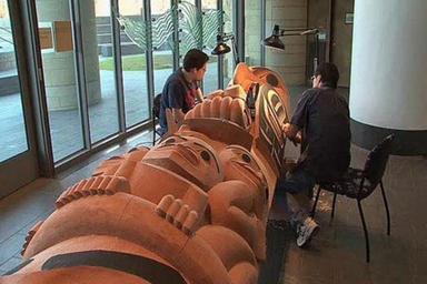 | Keywords: Native americans totem pole 480 20jan2012.jpg en Native American artist David Boxley is from the Tsimshian tribe in Alaska and he and his son work on one of the many totem poles they have created to keep their native culture alive at the National Museum of the American Indian in Washington DC January 2012 VOA http //www voanews com/english/news/arts-and-entertainment/art-culture/Native-American-Carves-Totem-Pole-for-Washington-DC-Museum-137795858 html Photo VOA 2012-01-20 PD-USGov-VOA Totem poles in Alaska Alaska Natives Tsimahian |