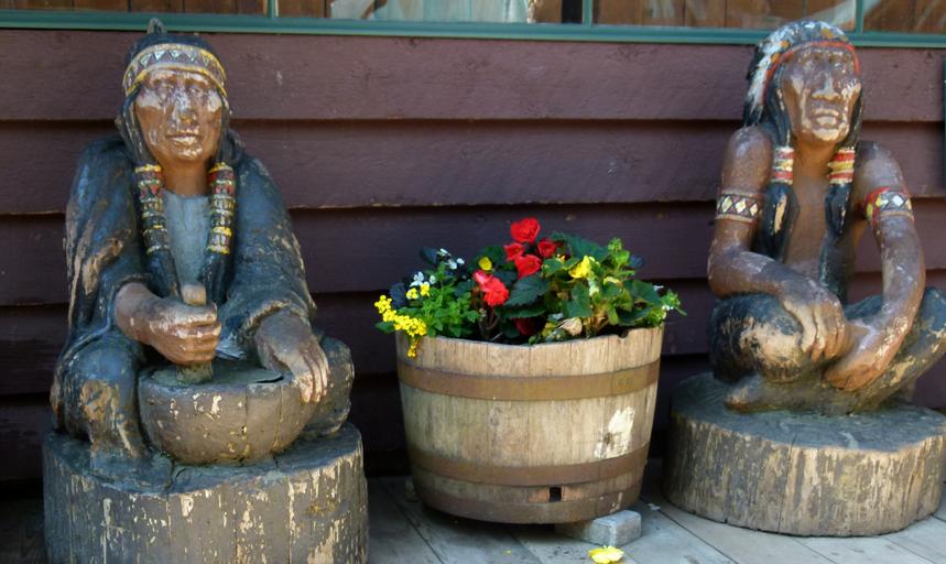 Keywords: native carvings indians american potted plants flowers