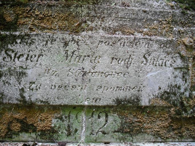 Keywords: Natpis na Steier krizi, Ritkarovci1.JPG 1 2 in the Ritkaháza woods Steier's name and the date own User Doncsecz 2011-07 Crucifixes in Kétvölgy Prekmurje Slovene inscriptions on crosses and tombs Cc-zero Ritkaháza