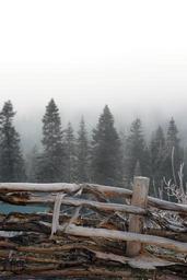 Keywords: natural fence pine trees nature forest foggy pines weather