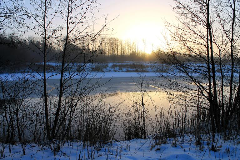 Keywords: natural sunset water sky ro winter ice cream denmark landscape view water edge lake trees silence