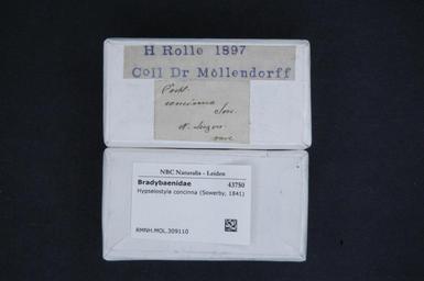 | Keywords: Naturalis Biodiversity Center - RMNH.MOL.309110 1 - Hypselostyla concinna (Sowerby, 1841) - Bradybaenidae - Mollusc shell.jpeg artwork Dimensions artwork Document type Bradybaenidae Hypselostyla Individual count Infraspecific epithet Infraspecific rank Institution Naturalis Kind of unit artwork Kind of unit specimen shell Life stage Medium artwork Nomenclatural code Source institute Rijksmuseum van Natuurlijke Historie Leiden Scale the width of the text on the species/QR-code label is 38 mm Occurrence ID page Other fields Other versions artwork Permission license Naturalis donation CC-0 Mollusca Publication location Scientific name Hypselostyla concinna Sowerby 1841 Scientific name authorship Sowerby 1841 Source url http //bioportal naturalis nl Specific epithet concinna State or province Subject keywords artwork Subject keywords publication Title artwork Title publication Type status Uploaded with GWToolset Naturalis_Biodiversity_Center_-_RMNH MOL 309110_1_-_Hypselostyla_concinna_ Sowerby _1841 _-_Bradybaenidae_-_Mollusc_shell http //medialib naturalis nl/file/id/RMNH MOL 309110_1/format/large Media donated by Naturalis Biodiversity Center Molluscs at Naturalis from the Rijksmuseum van Natuurlijke Historie Hypselostyla concinna Hypselostyla |