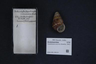 | Keywords: Naturalis Biodiversity Center - RMNH.MOL.309110 - Hypselostyla concinna (Sowerby, 1841) - Bradybaenidae - Mollusc shell.jpeg artwork Dimensions artwork Document type Bradybaenidae Hypselostyla Individual count Infraspecific epithet Infraspecific rank Institution Naturalis Kind of unit artwork Kind of unit specimen shell Life stage Medium artwork Nomenclatural code Source institute Rijksmuseum van Natuurlijke Historie Leiden Scale the width of the text on the species/QR-code label is 38 mm Occurrence ID page Other fields Other versions artwork Permission license Naturalis donation CC-0 Mollusca Publication location Scientific name Hypselostyla concinna Sowerby 1841 Scientific name authorship Sowerby 1841 Source url http //bioportal naturalis nl Specific epithet concinna State or province Subject keywords artwork Subject keywords publication Title artwork Title publication Type status Uploaded with GWToolset Naturalis_Biodiversity_Center_-_RMNH MOL 309110_-_Hypselostyla_concinna_ Sowerby _1841 _-_Bradybaenidae_-_Mollusc_shell http //medialib naturalis nl/file/id/RMNH MOL 309110/format/large Media donated by Naturalis Biodiversity Center Molluscs at Naturalis from the Rijksmuseum van Natuurlijke Historie Hypselostyla concinna Hypselostyla |