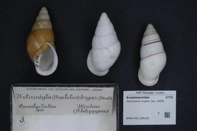 | Keywords: Naturalis Biodiversity Center - RMNH.MOL.309163 - Dolichostyla virgata (Jay, 1839) - Bradybaenidae - Mollusc shell.jpeg artwork Dimensions artwork Document type Bradybaenidae Dolichostyla Individual count Infraspecific epithet Infraspecific rank Institution Naturalis Kind of unit artwork Kind of unit specimen shell Life stage Medium artwork Nomenclatural code Source institute Rijksmuseum van Natuurlijke Historie Leiden Scale the width of the text on the species/QR-code label is 38 mm Occurrence ID page Other fields Other versions artwork Permission license Naturalis donation CC-0 Mollusca Publication location Scientific name Dolichostyla virgata Jay 1839 Scientific name authorship Jay 1839 Source url http //bioportal naturalis nl Specific epithet virgata State or province Subject keywords artwork Subject keywords publication Title artwork Title publication Type status Uploaded with GWToolset Naturalis_Biodiversity_Center_-_RMNH MOL 309163_-_Dolichostyla_virgata_ Jay _1839 _-_Bradybaenidae_-_Mollusc_shell http //medialib naturalis nl/file/id/RMNH MOL 309163/format/large Media donated by Naturalis Biodiversity Center Molluscs at Naturalis from the Rijksmuseum van Natuurlijke Historie Dolichostyla virgata Dolichostyla |