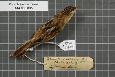 | Keywords: Naturalis Biodiversity Center - RMNH.AVES.137073 1 - Cisticola juncidis malaya Lynes, 1930 - Sylviidae - bird skin specimen.jpeg artwork Dimensions artwork Document type Sylviidae Cisticola Individual count 1 Infraspecific epithet malaya Infraspecific rank Institution Naturalis Kind of unit artwork Kind of unit specimen skin Life stage Indonesia Java Buitenzorg Dramaga Medium artwork Nomenclatural code Occurrence ID page Other fields Other versions artwork Permission license Naturalis donation CC-0 Publication location Scientific name Cisticola juncidis malaya Lynes 1930 Scientific name authorship Lynes 1930 male Source url http //bioportal naturalis nl Specific epithet juncidis State or province Subject keywords artwork Subject keywords publication Title artwork Title publication Type status Uploaded with GWToolset Naturalis_Biodiversity_Center_-_RMNH AVES 137073_1_-_Cisticola_juncidis_malaya_Lynes _1930_-_Sylviidae_-_bird_skin_specimen http //medialib naturalis nl/file/id/RMNH AVES 137073_1/format/large Media donated by Naturalis Biodiversity Center Songbird specimens at Naturalis Biodiversity Center Cisticola juncidis Cisticola |