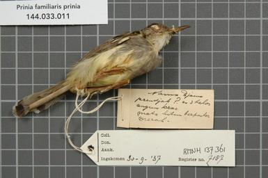 | Keywords: Naturalis Biodiversity Center - RMNH.AVES.137361 2 - Prinia familiaris prinia (Temminck, 1822) - Sylviidae - bird skin specimen.jpeg artwork Dimensions artwork Document type Sylviidae Prinia Individual count 1 Infraspecific epithet prinia Infraspecific rank Institution Naturalis Kind of unit artwork Kind of unit specimen skin Life stage Indonesia Java Semarang Gedangan Medium artwork Nomenclatural code Occurrence ID page Other fields Other versions artwork Permission license Naturalis donation CC-0 Publication location Scientific name Prinia familiaris prinia Temminck 1822 Scientific name authorship Temminck 1822 male Source url http //bioportal naturalis nl Specific epithet familiaris State or province Java Semarang Subject keywords artwork Subject keywords publication Title artwork Title publication Type status Uploaded with GWToolset Naturalis_Biodiversity_Center_-_RMNH AVES 137361_2_-_Prinia_familiaris_prinia_ Temminck _1822 _-_Sylviidae_-_bird_skin_specimen http //medialib naturalis nl/file/id/RMNH AVES 137361_2/format/large Media donated by Naturalis Biodiversity Center Songbird specimens at Naturalis Biodiversity Center Prinia familiaris Prinia |