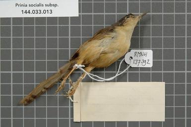 | Keywords: Naturalis Biodiversity Center - RMNH.AVES.137392 2 - Prinia socialis subsp. - Sylviidae - bird skin specimen.jpeg artwork Dimensions artwork Document type Sylviidae Prinia Individual count 1 Infraspecific epithet subsp Infraspecific rank Institution Naturalis Kind of unit artwork Kind of unit specimen skin Life stage India Medium artwork Nomenclatural code Sex remark on label male lab summer Oates Occurrence ID page Other fields Other versions artwork Permission license Naturalis donation CC-0 Publication location Scientific name Prinia socialis subsp Scientific name authorship male Source url http //bioportal naturalis nl Specific epithet socialis State or province Subject keywords artwork Subject keywords publication Title artwork Title publication Type status Uploaded with GWToolset Naturalis_Biodiversity_Center_-_RMNH AVES 137392_2_-_Prinia_socialis_subsp _-_Sylviidae_-_bird_skin_specimen http //medialib naturalis nl/file/id/RMNH AVES 137392_2/format/large Media donated by Naturalis Biodiversity Center Songbird specimens at Naturalis Biodiversity Center Prinia socialis Prinia |