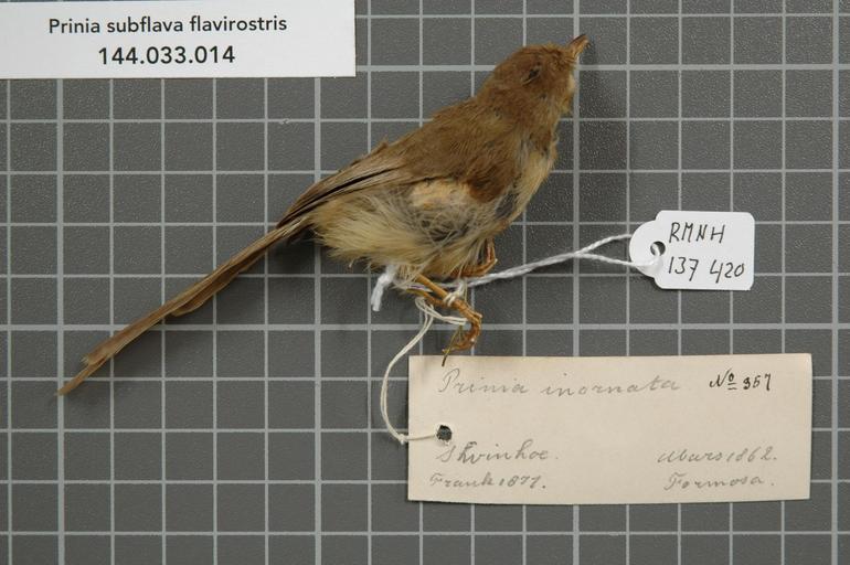 | Keywords: Naturalis Biodiversity Center - RMNH.AVES.137420 1 - Prinia subflava flavirostris (Swinhoe, 1863) - Sylviidae - bird skin specimen.jpeg artwork Dimensions artwork Document type Sylviidae Prinia Individual count 1 Infraspecific epithet flavirostris Infraspecific rank Institution Naturalis Kind of unit artwork Kind of unit specimen skin Life stage Formosa Medium artwork Nomenclatural code Occurrence ID page Other fields Other versions artwork Permission license Naturalis donation CC-0 Publication location Scientific name Prinia subflava flavirostris Swinhoe 1863 Scientific name authorship Swinhoe 1863 Source url http //bioportal naturalis nl Specific epithet subflava State or province Subject keywords artwork Subject keywords publication Title artwork Title publication Type status Uploaded with GWToolset Naturalis_Biodiversity_Center_-_RMNH AVES 137420_1_-_Prinia_subflava_flavirostris_ Swinhoe _1863 _-_Sylviidae_-_bird_skin_specimen http //medialib naturalis nl/file/id/RMNH AVES 137420_1/format/large Media donated by Naturalis Biodiversity Center Songbird specimens at Naturalis Biodiversity Center Prinia subflava Prinia |