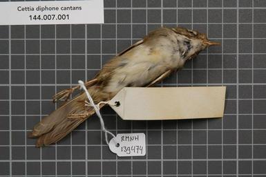 | Keywords: Naturalis Biodiversity Center - RMNH.AVES.139474 2 - Cettia diphone cantans (Temminck and Schlegel, 1847) - Sylviidae - bird skin specimen.jpeg artwork Dimensions artwork Document type Sylviidae Cettia Individual count 1 Infraspecific epithet cantans Infraspecific rank Institution Naturalis Kind of unit artwork Kind of unit specimen skin Life stage Japan Medium artwork Nomenclatural code Occurrence ID page Other fields Other versions artwork Permission license Naturalis donation CC-0 Publication location Scientific name Cettia diphone cantans Temminck and Schlegel 1847 Scientific name authorship Temminck and Schlegel 1847 Source url http //bioportal naturalis nl Specific epithet diphone State or province Subject keywords artwork Subject keywords publication Title artwork Title publication Type status Uploaded with GWToolset Naturalis_Biodiversity_Center_-_RMNH AVES 139474_2_-_Cettia_diphone_cantans_ Temminck_and_Schlegel _1847 _-_Sylviidae_-_bird_skin_specimen http //medialib naturalis nl/file/id/RMNH AVES 139474_2/format/large Media donated by Naturalis Biodiversity Center Songbird specimens at Naturalis Biodiversity Center Horornis diphone Cettia |