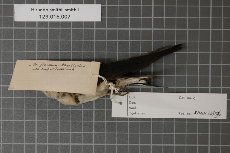 | Keywords: Naturalis Biodiversity Center - RMNH.AVES.125096 2 - Hirundo smithii smithii Leach, 1818 - Hirundinidae - bird skin specimen.jpeg artwork Dimensions artwork Document type Hirundinidae Hirundo Individual count 1 Infraspecific epithet smithii Infraspecific rank Institution Naturalis Kind of unit artwork Kind of unit specimen skin Life stage adult Abyssinia Medium artwork Nomenclatural code Additional label info H filifera Abyssinie old label Temminck Country remark Temm Occurrence ID page Other fields Other versions artwork Permission license Naturalis donation CC-0 Publication location Scientific name Hirundo smithii smithii Leach 1818 Scientific name authorship Leach 1818 Source url http //bioportal naturalis nl Specific epithet smithii State or province Subject keywords artwork Subject keywords publication Title artwork Title publication Type status Uploaded with GWToolset Naturalis_Biodiversity_Center_-_RMNH AVES 125096_2_-_Hirundo_smithii_smithii_Leach _1818_-_Hirundinidae_-_bird_skin_specimen http //medialib naturalis nl/file/id/RMNH AVES 125096_2/format/large Media donated by Naturalis Biodiversity Center Songbird specimens at Naturalis Biodiversity Center Hirundo smithii museum specimens |