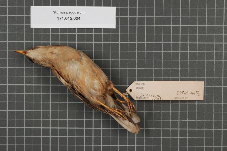 Keywords: Naturalis Biodiversity Center - RMNH.AVES.144329 2 - Sturnus pagodarum (J.F. Gmelin, 1789) - Sturnidae - bird skin specimen.jpeg artwork Dimensions artwork Document type Sturnidae Sturnus Individual count 1 Infraspecific epithet Infraspecific rank Institution Naturalis Kind of unit artwork Kind of unit specimen skin Life stage juvenile Voor-Indie Medium artwork Nomenclatural code Occurrence ID page Other fields Other versions artwork Permission license Naturalis donation CC-0 Publication location Scientific name Sturnus pagodarum J F Gmelin 1789 Scientific name authorship J F Gmelin 1789 female Source url http //bioportal naturalis nl Specific epithet pagodarum State or province Voor-Indie Subject keywords artwork Subject keywords publication Title artwork Title publication Type status Uploaded with GWToolset Naturalis_Biodiversity_Center_-_RMNH AVES 144329_2_-_Sturnus_pagodarum_ J F _Gmelin _1789 _-_Sturnidae_-_bird_skin_specimen http //medialib naturalis nl/file/id/RMNH AVES 144329_2/format/large Media donated by Naturalis Biodiversity Center Songbird specimens at Naturalis Biodiversity Center Sturnia pagodarum |