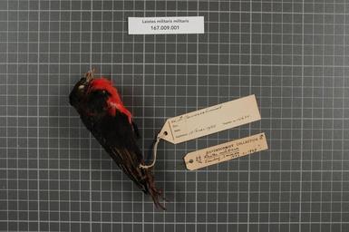 | Keywords: Naturalis Biodiversity Center - RMNH.AVES.14634 1 - Leistes militaris militaris (Linnaeus, 1758) - Icteridae - bird skin specimen.jpeg artwork Dimensions artwork Document type Icteridae Leistes Individual count 1 Infraspecific epithet militaris Infraspecific rank Institution Naturalis Kind of unit artwork Kind of unit specimen skin Life stage Surinam Zanderij Medium artwork Nomenclatural code Occurrence ID page Other fields Other versions artwork Permission license Naturalis donation CC-0 Publication location Scientific name Leistes militaris militaris Linnaeus 1758 Scientific name authorship Linnaeus 1758 male Source url http //bioportal naturalis nl Specific epithet militaris State or province Subject keywords artwork Subject keywords publication Title artwork Title publication Type status Uploaded with GWToolset Naturalis_Biodiversity_Center_-_RMNH AVES 14634_1_-_Leistes_militaris_militaris_ Linnaeus _1758 _-_Icteridae_-_bird_skin_specimen http //medialib naturalis nl/file/id/RMNH AVES 14634_1/format/large Media donated by Naturalis Biodiversity Center Songbird specimens at Naturalis Biodiversity Center Sturnella militaris |