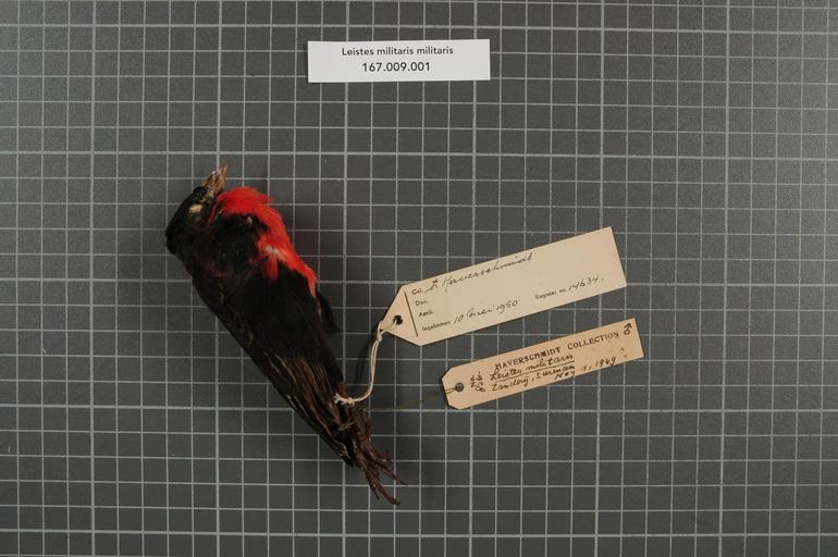 Keywords: Naturalis Biodiversity Center - RMNH.AVES.14634 1 - Leistes militaris militaris (Linnaeus, 1758) - Icteridae - bird skin specimen.jpeg artwork Dimensions artwork Document type Icteridae Leistes Individual count 1 Infraspecific epithet militaris Infraspecific rank Institution Naturalis Kind of unit artwork Kind of unit specimen skin Life stage Surinam Zanderij Medium artwork Nomenclatural code Occurrence ID page Other fields Other versions artwork Permission license Naturalis donation CC-0 Publication location Scientific name Leistes militaris militaris Linnaeus 1758 Scientific name authorship Linnaeus 1758 male Source url http //bioportal naturalis nl Specific epithet militaris State or province Subject keywords artwork Subject keywords publication Title artwork Title publication Type status Uploaded with GWToolset Naturalis_Biodiversity_Center_-_RMNH AVES 14634_1_-_Leistes_militaris_militaris_ Linnaeus _1758 _-_Icteridae_-_bird_skin_specimen http //medialib naturalis nl/file/id/RMNH AVES 14634_1/format/large Media donated by Naturalis Biodiversity Center Songbird specimens at Naturalis Biodiversity Center Sturnella militaris |
