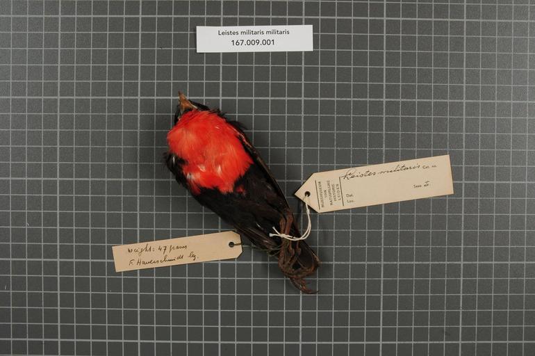 Keywords: Naturalis Biodiversity Center - RMNH.AVES.14634 2 - Leistes militaris militaris (Linnaeus, 1758) - Icteridae - bird skin specimen.jpeg artwork Dimensions artwork Document type Icteridae Leistes Individual count 1 Infraspecific epithet militaris Infraspecific rank Institution Naturalis Kind of unit artwork Kind of unit specimen skin Life stage Surinam Zanderij Medium artwork Nomenclatural code Occurrence ID page Other fields Other versions artwork Permission license Naturalis donation CC-0 Publication location Scientific name Leistes militaris militaris Linnaeus 1758 Scientific name authorship Linnaeus 1758 male Source url http //bioportal naturalis nl Specific epithet militaris State or province Subject keywords artwork Subject keywords publication Title artwork Title publication Type status Uploaded with GWToolset Naturalis_Biodiversity_Center_-_RMNH AVES 14634_2_-_Leistes_militaris_militaris_ Linnaeus _1758 _-_Icteridae_-_bird_skin_specimen http //medialib naturalis nl/file/id/RMNH AVES 14634_2/format/large Media donated by Naturalis Biodiversity Center Songbird specimens at Naturalis Biodiversity Center Sturnella militaris |