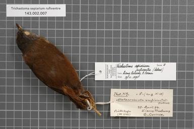 | Keywords: Naturalis Biodiversity Center - RMNH.AVES.147070 1 - Trichastoma sepiarium rufiventre (Salvadori, 1874) - Timaliidae - bird skin specimen.jpeg artwork Dimensions artwork Document type Timaliidae Trichastoma Individual count 1 Infraspecific epithet rufiventre Infraspecific rank Institution Naturalis Kind of unit artwork Kind of unit specimen skin Life stage Indonesia C Borneo Liang Kubung Medium artwork Nomenclatural code ADDITIONAL FAMILY INFO zu 'female' No 10 Sex remark On original label male Occurrence ID page Other fields Other versions artwork Permission license Naturalis donation CC-0 Publication location Scientific name Trichastoma sepiarium rufiventre Salvadori 1874 Scientific name authorship Salvadori 1874 male Source url http //bioportal naturalis nl Specific epithet sepiarium State or province C Borneo Subject keywords artwork Subject keywords publication Title artwork Title publication Type status Uploaded with GWToolset Naturalis_Biodiversity_Center_-_RMNH AVES 147070_1_-_Trichastoma_sepiarium_rufiventre_ Salvadori _1874 _-_Timaliidae_-_bird_skin_specimen http //medialib naturalis nl/file/id/RMNH AVES 147070_1/format/large Media donated by Naturalis Biodiversity Center Songbird specimens at Naturalis Biodiversity Center Trichastoma Trichastoma sepiarium |