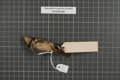 | Keywords: Naturalis Biodiversity Center - RMNH.AVES.149875 2 - Presrophila torqueola morelleti (Bonaparte, 1851) - Emberizidae - bird skin specimen.jpeg artwork Dimensions artwork Document type Emberizidae Sporophila Individual count 1 Infraspecific epithet morelleti Infraspecific rank Institution Naturalis Kind of unit artwork Kind of unit specimen skin Life stage juvenile Costa Rica Medium artwork Nomenclatural code Occurrence ID page Other fields Other versions artwork Permission license Naturalis donation CC-0 Publication location Scientific name Presrophila torqueola morelleti Bonaparte 1851 Scientific name authorship Bonaparte 1851 male Source url http //bioportal naturalis nl Specific epithet torqueola State or province Subject keywords artwork Subject keywords publication Title artwork Title publication Type status Uploaded with GWToolset Naturalis_Biodiversity_Center_-_RMNH AVES 149875_2_-_Presrophila_torqueola_morelleti_ Bonaparte _1851 _-_Emberizidae_-_bird_skin_specimen http //medialib naturalis nl/file/id/RMNH AVES 149875_2/format/large Media donated by Naturalis Biodiversity Center Songbird specimens at Naturalis Biodiversity Center Sporophila Sporophila torqueola |