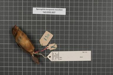 | Keywords: Naturalis Biodiversity Center - RMNH.AVES.149885 2 - Presrophila torqueola morelleti (Bonaparte, 1851) - Emberizidae - bird skin specimen.jpeg artwork Dimensions artwork Document type Emberizidae Sporophila Individual count 1 Infraspecific epithet morelleti Infraspecific rank Institution Naturalis Kind of unit artwork Kind of unit specimen skin Life stage juvenile Honduras Chamelicon Medium artwork Nomenclatural code Occurrence ID page Other fields Other versions artwork Permission license Naturalis donation CC-0 Publication location Scientific name Presrophila torqueola morelleti Bonaparte 1851 Scientific name authorship Bonaparte 1851 male Source url http //bioportal naturalis nl Specific epithet torqueola State or province Subject keywords artwork Subject keywords publication Title artwork Title publication Type status Uploaded with GWToolset Naturalis_Biodiversity_Center_-_RMNH AVES 149885_2_-_Presrophila_torqueola_morelleti_ Bonaparte _1851 _-_Emberizidae_-_bird_skin_specimen http //medialib naturalis nl/file/id/RMNH AVES 149885_2/format/large Media donated by Naturalis Biodiversity Center Songbird specimens at Naturalis Biodiversity Center Sporophila Sporophila torqueola |