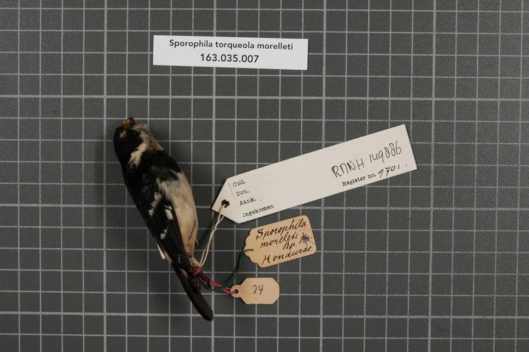 Keywords: Naturalis Biodiversity Center - RMNH.AVES.149886 1 - Presrophila torqueola morelleti (Bonaparte, 1851) - Emberizidae - bird skin specimen.jpeg artwork Dimensions artwork Document type Emberizidae Sporophila Individual count 1 Infraspecific epithet morelleti Infraspecific rank Institution Naturalis Kind of unit artwork Kind of unit specimen skin Life stage juvenile Honduras Medium artwork Nomenclatural code Age remark on label juv whipped out Occurrence ID page Other fields Other versions artwork Permission license Naturalis donation CC-0 Publication location Scientific name Presrophila torqueola morelleti Bonaparte 1851 Scientific name authorship Bonaparte 1851 Source url http //bioportal naturalis nl Specific epithet torqueola State or province Subject keywords artwork Subject keywords publication Title artwork Title publication Type status Uploaded with GWToolset Naturalis_Biodiversity_Center_-_RMNH AVES 149886_1_-_Presrophila_torqueola_morelleti_ Bonaparte _1851 _-_Emberizidae_-_bird_skin_specimen http //medialib naturalis nl/file/id/RMNH AVES 149886_1/format/large Media donated by Naturalis Biodiversity Center Songbird specimens at Naturalis Biodiversity Center Sporophila Sporophila torqueola |