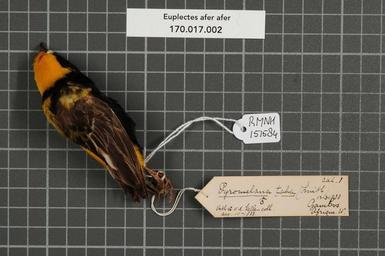 | Keywords: Naturalis Biodiversity Center - RMNH.AVES.151584 1 - Euplectes afer afer Gmelin, 1789 - Ploceidae - bird skin specimen.jpeg artwork Dimensions artwork Document type Ploceidae Euplectes Individual count 1 Infraspecific epithet afer Infraspecific rank Institution Naturalis Kind of unit artwork Kind of unit specimen skin Life stage Afrique W Gambos Medium artwork Nomenclatural code Occurrence ID page Other fields Other versions artwork Permission license Naturalis donation CC-0 Publication location Scientific name Euplectes afer afer Gmelin 1789 Scientific name authorship Gmelin 1789 male Source url http //bioportal naturalis nl Specific epithet afer State or province Afrique W Subject keywords artwork Subject keywords publication Title artwork Title publication Type status Uploaded with GWToolset Naturalis_Biodiversity_Center_-_RMNH AVES 151584_1_-_Euplectes_afer_afer_Gmelin _1789_-_Ploceidae_-_bird_skin_specimen http //medialib naturalis nl/file/id/RMNH AVES 151584_1/format/large Media donated by Naturalis Biodiversity Center Songbird specimens at Naturalis Biodiversity Center Euplectes afer Euplectes |