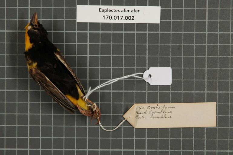 | Keywords: Naturalis Biodiversity Center - RMNH.AVES.151584 2 - Euplectes afer afer Gmelin, 1789 - Ploceidae - bird skin specimen.jpeg artwork Dimensions artwork Document type Ploceidae Euplectes Individual count 1 Infraspecific epithet afer Infraspecific rank Institution Naturalis Kind of unit artwork Kind of unit specimen skin Life stage Afrique W Gambos Medium artwork Nomenclatural code Occurrence ID page Other fields Other versions artwork Permission license Naturalis donation CC-0 Publication location Scientific name Euplectes afer afer Gmelin 1789 Scientific name authorship Gmelin 1789 male Source url http //bioportal naturalis nl Specific epithet afer State or province Afrique W Subject keywords artwork Subject keywords publication Title artwork Title publication Type status Uploaded with GWToolset Naturalis_Biodiversity_Center_-_RMNH AVES 151584_2_-_Euplectes_afer_afer_Gmelin _1789_-_Ploceidae_-_bird_skin_specimen http //medialib naturalis nl/file/id/RMNH AVES 151584_2/format/large Media donated by Naturalis Biodiversity Center Songbird specimens at Naturalis Biodiversity Center Euplectes afer Euplectes |