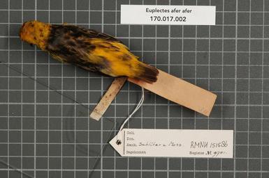 | Keywords: Naturalis Biodiversity Center - RMNH.AVES.151586 2 - Euplectes afer afer Gmelin, 1789 - Ploceidae - bird skin specimen.jpeg artwork Dimensions artwork Document type Ploceidae Euplectes Individual count 1 Infraspecific epithet afer Infraspecific rank Institution Naturalis Kind of unit artwork Kind of unit specimen skin Life stage Southern Nigeria Anambra Creek Aguleri Medium artwork Nomenclatural code Occurrence ID page Other fields Other versions artwork Permission license Naturalis donation CC-0 Publication location Scientific name Euplectes afer afer Gmelin 1789 Scientific name authorship Gmelin 1789 male Source url http //bioportal naturalis nl Specific epithet afer State or province Southern Nigeria Subject keywords artwork Subject keywords publication Title artwork Title publication Type status Uploaded with GWToolset Naturalis_Biodiversity_Center_-_RMNH AVES 151586_2_-_Euplectes_afer_afer_Gmelin _1789_-_Ploceidae_-_bird_skin_specimen http //medialib naturalis nl/file/id/RMNH AVES 151586_2/format/large Media donated by Naturalis Biodiversity Center Songbird specimens at Naturalis Biodiversity Center Euplectes afer Euplectes |