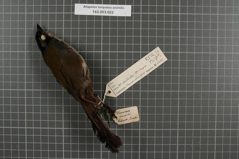 | Keywords: Naturalis Biodiversity Center - RMNH.AVES.151765 1 - Atlapetes torquatus assimilis (Boissonneau, 1840) - Emberizidae - bird skin specimen.jpeg artwork Dimensions artwork Document type Emberizidae Atlapetes Individual count 1 Infraspecific epithet assimilis Infraspecific rank Institution Naturalis Kind of unit artwork Kind of unit specimen skin Life stage Ecuador Riobamba Medium artwork Nomenclatural code Occurrence ID page Other fields Other versions artwork Permission license Naturalis donation CC-0 Publication location Scientific name Atlapetes torquatus assimilis Boissonneau 1840 Scientific name authorship Boissonneau 1840 Source url http //bioportal naturalis nl Specific epithet torquatus State or province Subject keywords artwork Subject keywords publication Title artwork Title publication Type status Uploaded with GWToolset Naturalis_Biodiversity_Center_-_RMNH AVES 151765_1_-_Atlapetes_torquatus_assimilis_ Boissonneau _1840 _-_Emberizidae_-_bird_skin_specimen http //medialib naturalis nl/file/id/RMNH AVES 151765_1/format/large Media donated by Naturalis Biodiversity Center Songbird specimens at Naturalis Biodiversity Center Atlapetes torquatus Atlapetes |