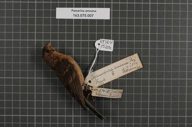 | Keywords: Naturalis Biodiversity Center - RMNH.AVES.152031 1 - Passerina amoena (Say, 1823) - Emberizidae - bird skin specimen.jpeg artwork Dimensions artwork Document type Emberizidae Passerina Individual count 1 Infraspecific epithet Infraspecific rank Institution Naturalis Kind of unit artwork Kind of unit specimen skin Life stage U S Pittrever Medium artwork Nomenclatural code Occurrence ID page Other fields Other versions artwork Permission license Naturalis donation CC-0 Publication location Scientific name Passerina amoena Say 1823 Scientific name authorship Say 1823 female Source url http //bioportal naturalis nl Specific epithet amoena State or province Subject keywords artwork Subject keywords publication Title artwork Title publication Type status Uploaded with GWToolset Naturalis_Biodiversity_Center_-_RMNH AVES 152031_1_-_Passerina_amoena_ Say _1823 _-_Emberizidae_-_bird_skin_specimen http //medialib naturalis nl/file/id/RMNH AVES 152031_1/format/large Media donated by Naturalis Biodiversity Center Songbird specimens at Naturalis Biodiversity Center Passerina amoena Passerina |