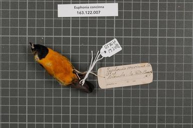 | Keywords: Naturalis Biodiversity Center - RMNH.AVES.152482 1 - Euphonia concinna Sclater, 1855 - Emberizidae - bird skin specimen.jpeg artwork Dimensions artwork Document type Emberizidae Euphonia Individual count 1 Infraspecific epithet Infraspecific rank Institution Naturalis Kind of unit artwork Kind of unit specimen skin Life stage adult Columbia Sta Fé de Bogota Medium artwork Nomenclatural code ADDITIONAL info X Sex remark on label male Occurrence ID page Other fields Other versions artwork Permission license Naturalis donation CC-0 Publication location Scientific name Euphonia concinna Sclater 1855 Scientific name authorship Sclater 1855 male Source url http //bioportal naturalis nl Specific epithet concinna State or province Subject keywords artwork Subject keywords publication Title artwork Title publication Type status Uploaded with GWToolset Naturalis_Biodiversity_Center_-_RMNH AVES 152482_1_-_Euphonia_concinna_Sclater _1855_-_Emberizidae_-_bird_skin_specimen http //medialib naturalis nl/file/id/RMNH AVES 152482_1/format/large Media donated by Naturalis Biodiversity Center Songbird specimens at Naturalis Biodiversity Center Euphonia concinna Euphonia |