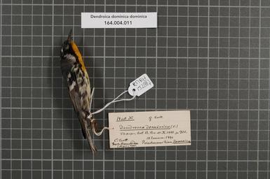 | Keywords: Naturalis Biodiversity Center - RMNH.AVES.152887 1 - Dendroica dominica dominica (Linnaeus, 1766) - Parulidae - bird skin specimen.jpeg artwork Dimensions artwork Document type Parulidae Dendroica Individual count 1 Infraspecific epithet dominica Infraspecific rank Institution Naturalis Kind of unit artwork Kind of unit specimen skin Life stage Jamaica Priestmans River Medium artwork Nomenclatural code Sex remark on label F male coll Occurrence ID page Other fields Other versions artwork Permission license Naturalis donation CC-0 Publication location Scientific name Dendroica dominica dominica Linnaeus 1766 Scientific name authorship Linnaeus 1766 female Source url http //bioportal naturalis nl Specific epithet dominica State or province Subject keywords artwork Subject keywords publication Title artwork Title publication Type status Uploaded with GWToolset Naturalis_Biodiversity_Center_-_RMNH AVES 152887_1_-_Dendroica_dominica_dominica_ Linnaeus _1766 _-_Parulidae_-_bird_skin_specimen http //medialib naturalis nl/file/id/RMNH AVES 152887_1/format/large Media donated by Naturalis Biodiversity Center Songbird specimens at Naturalis Biodiversity Center Setophaga dominica museum specimens |