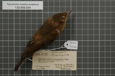 | Keywords: Naturalis Biodiversity Center - RMNH.AVES.126120 1 - Pycnonotus simplex perplexus Chasen & Kloss, 1929 - Pycnonotidae - bird skin specimen.jpeg artwork Dimensions artwork Document type Pycnonotidae Pycnonotus Individual count 1 Infraspecific epithet perplexus Infraspecific rank Institution Naturalis Kind of unit artwork Kind of unit specimen skin Life stage Indonesia C Borneo upper Mahakam Blu Riv Medium artwork Nomenclatural code ADDITIONAL FAMILY INFO zu female N 33 Sex remark male z n female N 33 Occurrence ID page Other fields Other versions artwork Permission license Naturalis donation CC-0 Publication location Scientific name Pycnonotus simplex perplexus Chasen Kloss 1929 Scientific name authorship Chasen Kloss 1929 male Source url http //bioportal naturalis nl Specific epithet simplex State or province C Borneo upper Mahakam Subject keywords artwork Subject keywords publication Title artwork Title publication Type status Uploaded with GWToolset Naturalis_Biodiversity_Center_-_RMNH AVES 126120_1_-_Pycnonotus_simplex_perplexus_Chasen_ _Kloss _1929_-_Pycnonotidae_-_bird_skin_specimen http //medialib naturalis nl/file/id/RMNH AVES 126120_1/format/large Media donated by Naturalis Biodiversity Center Songbird specimens at Naturalis Biodiversity Center Pycnonotus simplex |