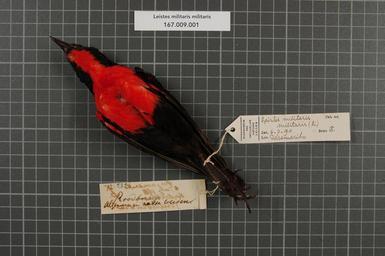 | Keywords: Naturalis Biodiversity Center - RMNH.AVES.153538 2 - Leistes militaris militaris (Linnaeus, 1758) - Icteridae - bird skin specimen.jpeg artwork Dimensions artwork Document type Icteridae Leistes Individual count 1 Infraspecific epithet militaris Infraspecific rank Institution Naturalis Kind of unit artwork Kind of unit specimen skin Life stage Suriname Paramaribo Medium artwork Nomenclatural code Occurrence ID page Other fields Other versions artwork Permission license Naturalis donation CC-0 Publication location Scientific name Leistes militaris militaris Linnaeus 1758 Scientific name authorship Linnaeus 1758 male Source url http //bioportal naturalis nl Specific epithet militaris State or province Subject keywords artwork Subject keywords publication Title artwork Title publication Type status Uploaded with GWToolset Naturalis_Biodiversity_Center_-_RMNH AVES 153538_2_-_Leistes_militaris_militaris_ Linnaeus _1758 _-_Icteridae_-_bird_skin_specimen http //medialib naturalis nl/file/id/RMNH AVES 153538_2/format/large Media donated by Naturalis Biodiversity Center Songbird specimens at Naturalis Biodiversity Center Sturnella militaris |