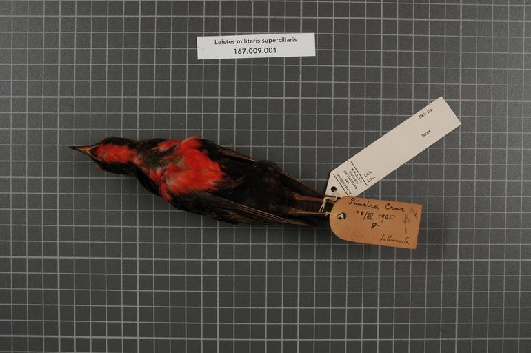 Keywords: Naturalis Biodiversity Center - RMNH.AVES.153542 2 - Leistes militaris superciliaris Bonaparte, 1851 - Icteridae - bird skin specimen.jpeg artwork Dimensions artwork Document type Icteridae Leistes Individual count 1 Infraspecific epithet superciliaris Infraspecific rank Institution Naturalis Kind of unit artwork Kind of unit specimen skin Life stage adult Primer Cruz Medium artwork Nomenclatural code Sex remark on original label one side male other side femal Occurrence ID page Other fields Other versions artwork Permission license Naturalis donation CC-0 Publication location Scientific name Leistes militaris superciliaris Bonaparte 1851 Scientific name authorship Bonaparte 1851 Source url http //bioportal naturalis nl Specific epithet militaris State or province Subject keywords artwork Subject keywords publication Title artwork Title publication Type status Uploaded with GWToolset Naturalis_Biodiversity_Center_-_RMNH AVES 153542_2_-_Leistes_militaris_superciliaris_Bonaparte _1851_-_Icteridae_-_bird_skin_specimen http //medialib naturalis nl/file/id/RMNH AVES 153542_2/format/large Media donated by Naturalis Biodiversity Center Songbird specimens at Naturalis Biodiversity Center Sturnella militaris |