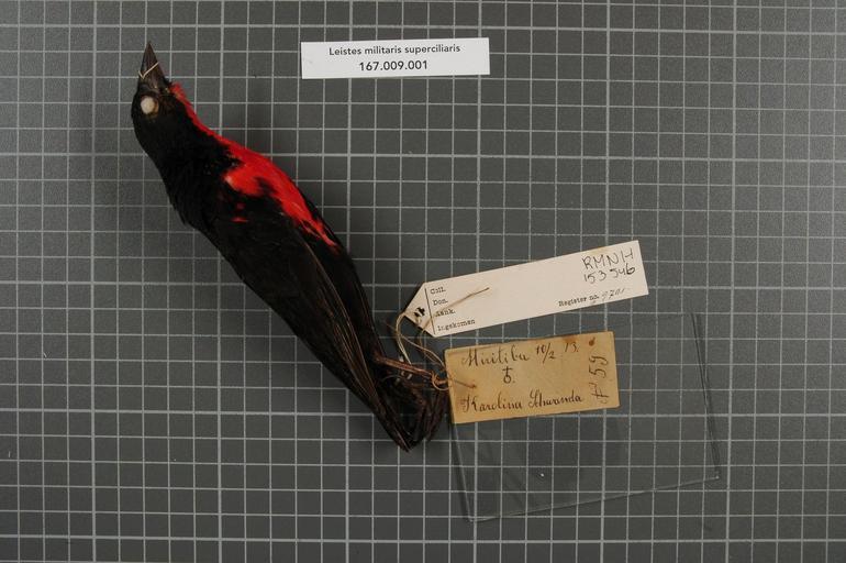 Keywords: Naturalis Biodiversity Center - RMNH.AVES.153546 1 - Leistes militaris superciliaris Bonaparte, 1851 - Icteridae - bird skin specimen.jpeg artwork Dimensions artwork Document type Icteridae Leistes Individual count 1 Infraspecific epithet superciliaris Infraspecific rank Institution Naturalis Kind of unit artwork Kind of unit specimen skin Life stage Miritiba Medium artwork Nomenclatural code Occurrence ID page Other fields Other versions artwork Permission license Naturalis donation CC-0 Publication location Scientific name Leistes militaris superciliaris Bonaparte 1851 Scientific name authorship Bonaparte 1851 male Source url http //bioportal naturalis nl Specific epithet militaris State or province Subject keywords artwork Subject keywords publication Title artwork Title publication Type status Uploaded with GWToolset Naturalis_Biodiversity_Center_-_RMNH AVES 153546_1_-_Leistes_militaris_superciliaris_Bonaparte _1851_-_Icteridae_-_bird_skin_specimen http //medialib naturalis nl/file/id/RMNH AVES 153546_1/format/large Media donated by Naturalis Biodiversity Center Songbird specimens at Naturalis Biodiversity Center Sturnella militaris |