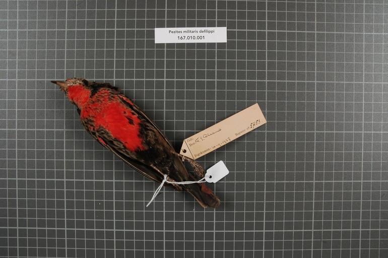 Keywords: Naturalis Biodiversity Center - RMNH.AVES.153550 2 - Pezites militaris defilippi (Bonaparte, 1851) - Icteridae - bird skin specimen.jpeg artwork Dimensions artwork Document type Icteridae Pezites Individual count 1 Infraspecific epithet defilippi Infraspecific rank Institution Naturalis Kind of unit artwork Kind of unit specimen skin Life stage Medium artwork Nomenclatural code Occurrence ID page Other fields Other versions artwork Permission license Naturalis donation CC-0 Publication location Scientific name Pezites militaris defilippi Bonaparte 1851 Scientific name authorship Bonaparte 1851 male Source url http //bioportal naturalis nl Specific epithet militaris State or province Subject keywords artwork Subject keywords publication Title artwork Title publication Type status Uploaded with GWToolset Naturalis_Biodiversity_Center_-_RMNH AVES 153550_2_-_Pezites_militaris_defilippi_ Bonaparte _1851 _-_Icteridae_-_bird_skin_specimen http //medialib naturalis nl/file/id/RMNH AVES 153550_2/format/large Media donated by Naturalis Biodiversity Center Songbird specimens at Naturalis Biodiversity Center Pezites militaris Pezites |