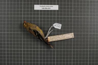 | Keywords: Naturalis Biodiversity Center - RMNH.AVES.154020 1 - Carduelis tristis tristis (Linnaeus, 1758) - Fringillidae - bird skin specimen.jpeg artwork Dimensions artwork Document type Fringillidae Carduelis Individual count 1 Infraspecific epithet tristis Infraspecific rank Institution Naturalis Kind of unit artwork Kind of unit specimen skin Life stage Maryland Montgomery Co Cabin John Medium artwork Nomenclatural code Occurrence ID page Other fields Other versions artwork Permission license Naturalis donation CC-0 Publication location Scientific name Carduelis tristis tristis Linnaeus 1758 Scientific name authorship Linnaeus 1758 male Source url http //bioportal naturalis nl Specific epithet tristis State or province Maryland Montgomery Co Subject keywords artwork Subject keywords publication Title artwork Title publication Type status Uploaded with GWToolset Naturalis_Biodiversity_Center_-_RMNH AVES 154020_1_-_Carduelis_tristis_tristis_ Linnaeus _1758 _-_Fringillidae_-_bird_skin_specimen http //medialib naturalis nl/file/id/RMNH AVES 154020_1/format/large Media donated by Naturalis Biodiversity Center Songbird specimens at Naturalis Biodiversity Center Spinus tristis Carduelis |