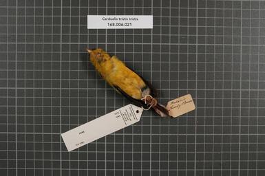 | Keywords: Naturalis Biodiversity Center - RMNH.AVES.154029 2 - Carduelis tristis tristis (Linnaeus, 1758) - Fringillidae - bird skin specimen.jpeg artwork Dimensions artwork Document type Fringillidae Carduelis Individual count 1 Infraspecific epithet tristis Infraspecific rank Institution Naturalis Kind of unit artwork Kind of unit specimen skin Life stage Canada Ontario County Bruce Medium artwork Nomenclatural code Occurrence ID page Other fields Other versions artwork Permission license Naturalis donation CC-0 Publication location Scientific name Carduelis tristis tristis Linnaeus 1758 Scientific name authorship Linnaeus 1758 female Source url http //bioportal naturalis nl Specific epithet tristis State or province Ontario Subject keywords artwork Subject keywords publication Title artwork Title publication Type status Uploaded with GWToolset Naturalis_Biodiversity_Center_-_RMNH AVES 154029_2_-_Carduelis_tristis_tristis_ Linnaeus _1758 _-_Fringillidae_-_bird_skin_specimen http //medialib naturalis nl/file/id/RMNH AVES 154029_2/format/large Media donated by Naturalis Biodiversity Center Songbird specimens at Naturalis Biodiversity Center Spinus tristis Carduelis |