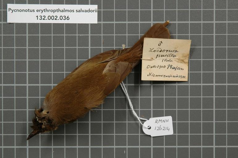 | Keywords: Naturalis Biodiversity Center - RMNH.AVES.126214 1 - Pycnonotus erythropthalmos salvadorii Sharpe, 1874 - Pycnonotidae - bird skin specimen.jpeg artwork Dimensions artwork Document type Pycnonotidae Pycnonotus Individual count 1 Infraspecific epithet salvadorii Infraspecific rank Institution Naturalis Kind of unit artwork Kind of unit specimen skin Life stage Kajan Medium artwork Nomenclatural code Additional info AF Additional info remark comment recorder F probably is symbol not letter F Occurrence ID page Other fields Other versions artwork Permission license Naturalis donation CC-0 Publication location Scientific name Pycnonotus erythropthalmos salvadorii Sharpe 1874 Scientific name authorship Sharpe 1874 male Source url http //bioportal naturalis nl Specific epithet erythropthalmos State or province Subject keywords artwork Subject keywords publication Title artwork Title publication Type status Uploaded with GWToolset Naturalis_Biodiversity_Center_-_RMNH AVES 126214_1_-_Pycnonotus_erythropthalmos_salvadorii_Sharpe _1874_-_Pycnonotidae_-_bird_skin_specimen http //medialib naturalis nl/file/id/RMNH AVES 126214_1/format/large Media donated by Naturalis Biodiversity Center Songbird specimens at Naturalis Biodiversity Center Pycnonotus erythropthalmos |