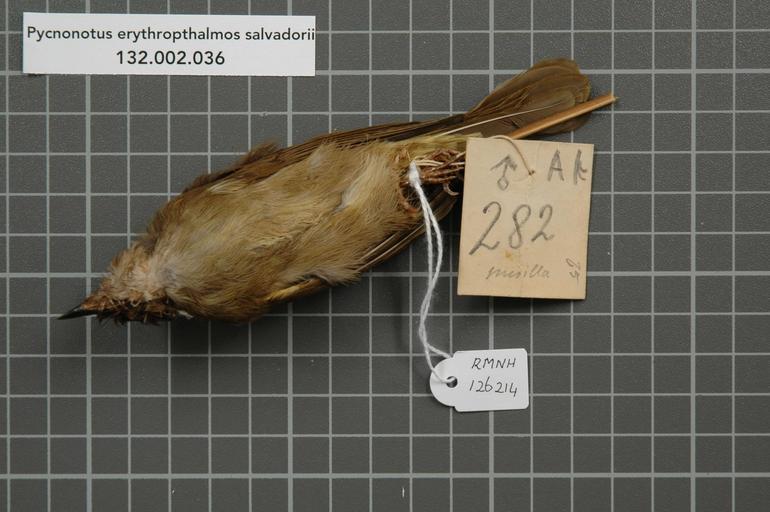 | Keywords: Naturalis Biodiversity Center - RMNH.AVES.126214 2 - Pycnonotus erythropthalmos salvadorii Sharpe, 1874 - Pycnonotidae - bird skin specimen.jpeg artwork Dimensions artwork Document type Pycnonotidae Pycnonotus Individual count 1 Infraspecific epithet salvadorii Infraspecific rank Institution Naturalis Kind of unit artwork Kind of unit specimen skin Life stage Kajan Medium artwork Nomenclatural code Additional info AF Additional info remark comment recorder F probably is symbol not letter F Occurrence ID page Other fields Other versions artwork Permission license Naturalis donation CC-0 Publication location Scientific name Pycnonotus erythropthalmos salvadorii Sharpe 1874 Scientific name authorship Sharpe 1874 male Source url http //bioportal naturalis nl Specific epithet erythropthalmos State or province Subject keywords artwork Subject keywords publication Title artwork Title publication Type status Uploaded with GWToolset Naturalis_Biodiversity_Center_-_RMNH AVES 126214_2_-_Pycnonotus_erythropthalmos_salvadorii_Sharpe _1874_-_Pycnonotidae_-_bird_skin_specimen http //medialib naturalis nl/file/id/RMNH AVES 126214_2/format/large Media donated by Naturalis Biodiversity Center Songbird specimens at Naturalis Biodiversity Center Pycnonotus erythropthalmos |