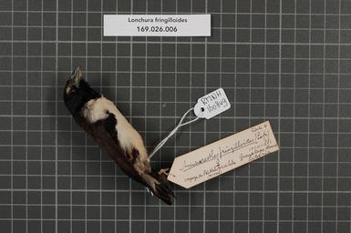 | Keywords: Naturalis Biodiversity Center - RMNH.AVES.160849 1 - Lonchura fringilloides Lafresnaye, 1835 - Estrildidae - bird skin specimen.jpeg artwork Dimensions artwork Document type Estrildidae Lonchura Individual count 1 Infraspecific epithet Infraspecific rank Institution Naturalis Kind of unit artwork Kind of unit specimen skin Life stage Liberia Grand Cape Mount Medium artwork Nomenclatural code Occurrence ID page Other fields Other versions artwork Permission license Naturalis donation CC-0 Publication location Scientific name Lonchura fringilloides Lafresnaye 1835 Scientific name authorship Lafresnaye 1835 female Source url http //bioportal naturalis nl Specific epithet fringilloides State or province Grand Cape Mount Subject keywords artwork Subject keywords publication Title artwork Title publication Type status Uploaded with GWToolset Naturalis_Biodiversity_Center_-_RMNH AVES 160849_1_-_Lonchura_fringilloides_Lafresnaye _1835_-_Estrildidae_-_bird_skin_specimen http //medialib naturalis nl/file/id/RMNH AVES 160849_1/format/large Media donated by Naturalis Biodiversity Center Songbird specimens at Naturalis Biodiversity Center Lonchura fringilloides Lonchura |